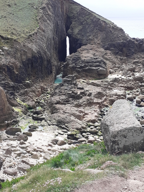 For the shortest walking route park at Lands End Car Park and descend along the south coast path from the far side of the car park. You can also park at Porthgwarra and walk North along the coast path. Either way, the views are pretty spectacular.